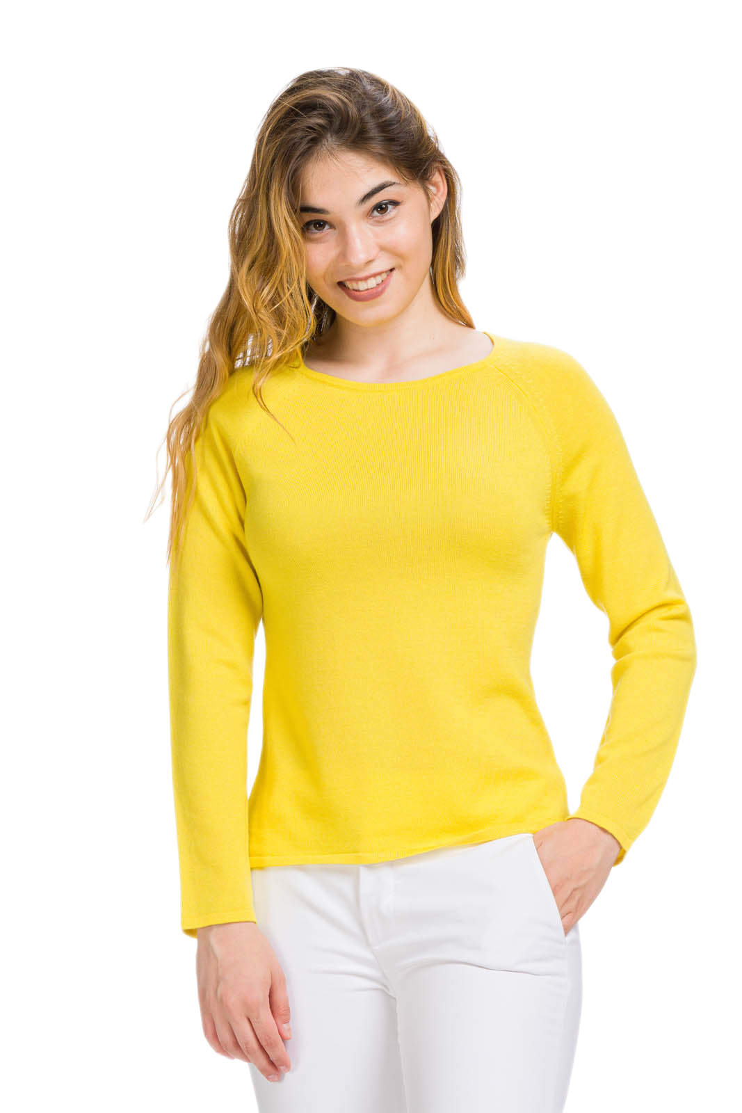 Elegance and casual style merge in this lightweight women's sweater with boat neck, designed and produced in Italy in soft pure extra fine merino wool.