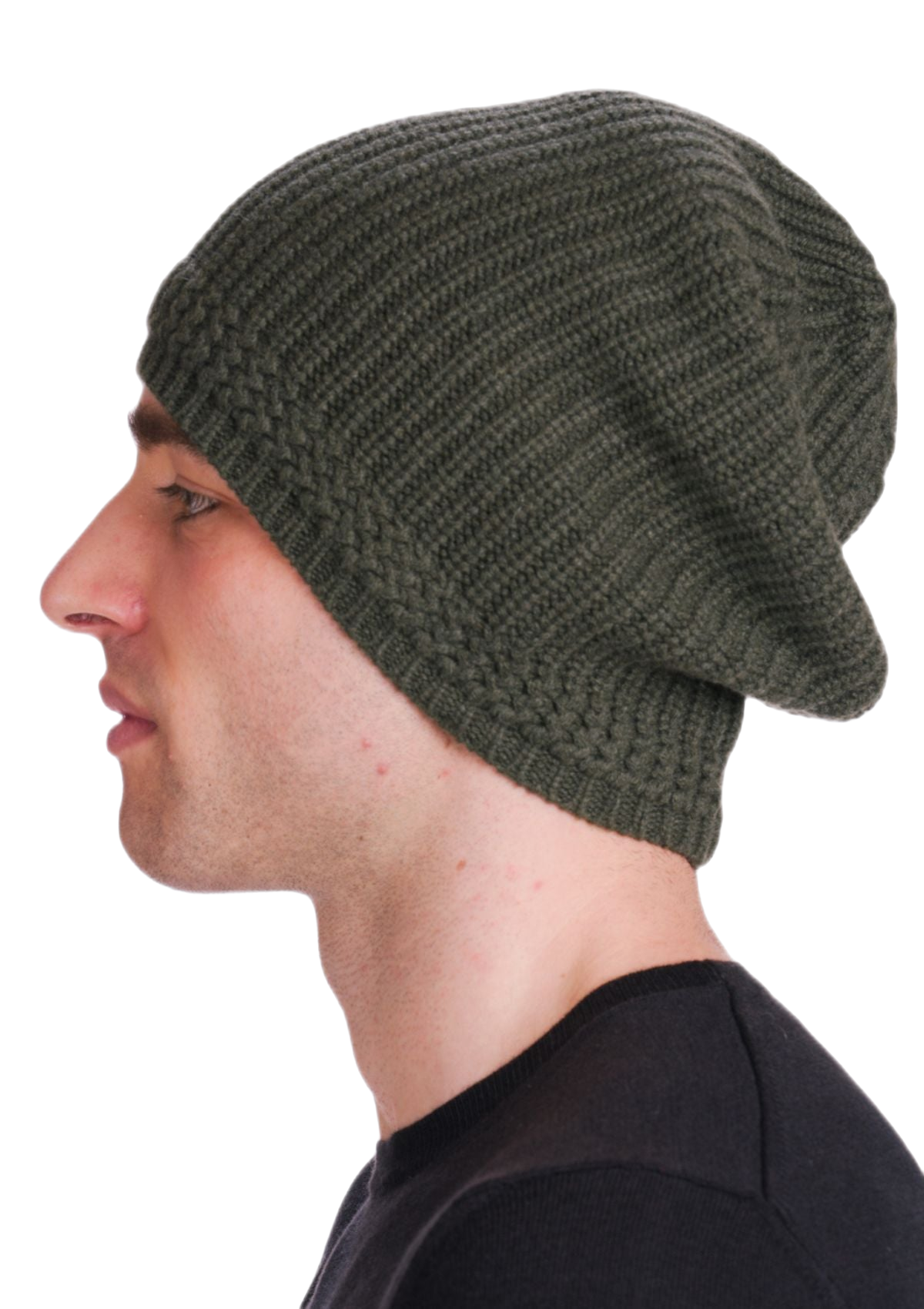 Cálido gorro de hombre realizado en lana y cachemira, con tejido en punto perlado. Casual y perfecto para usar en la montaña y en la ciudad. Modelo unisex.